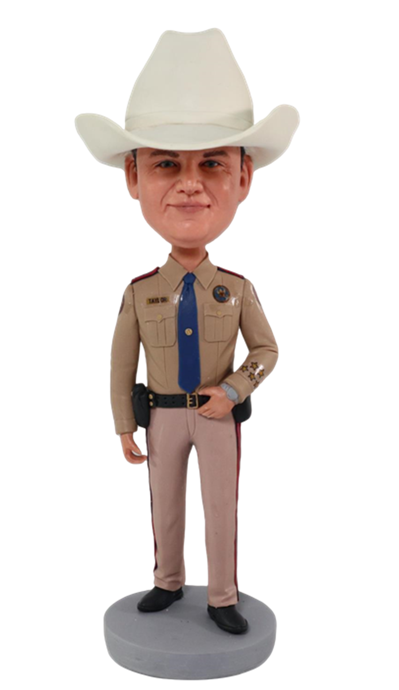 Custom Sheriff Bobblehead with White Hat Retired Policeman Gift