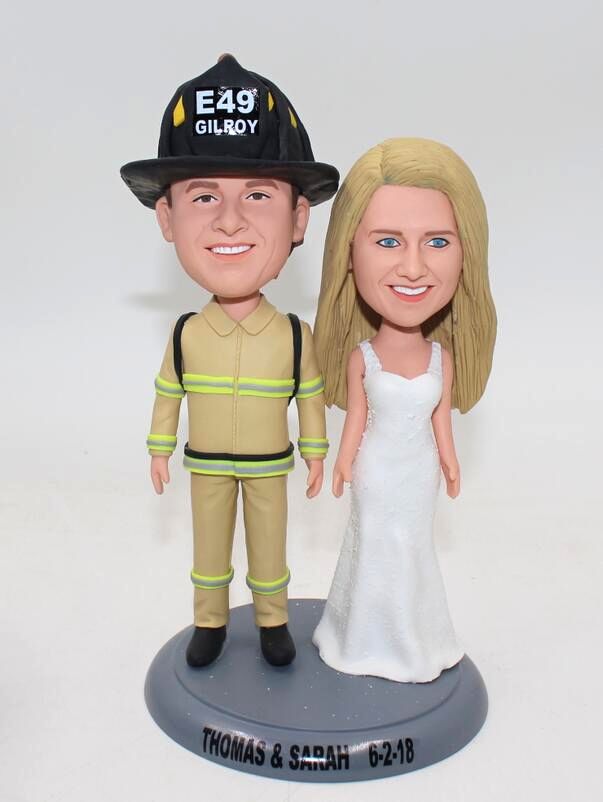 wedding bobbleheads cake toppers are on average 16-18cm( 6-7 inch) tall when standing upright, 0.5KG (1LB ), suitable to install on most of wedding cake.